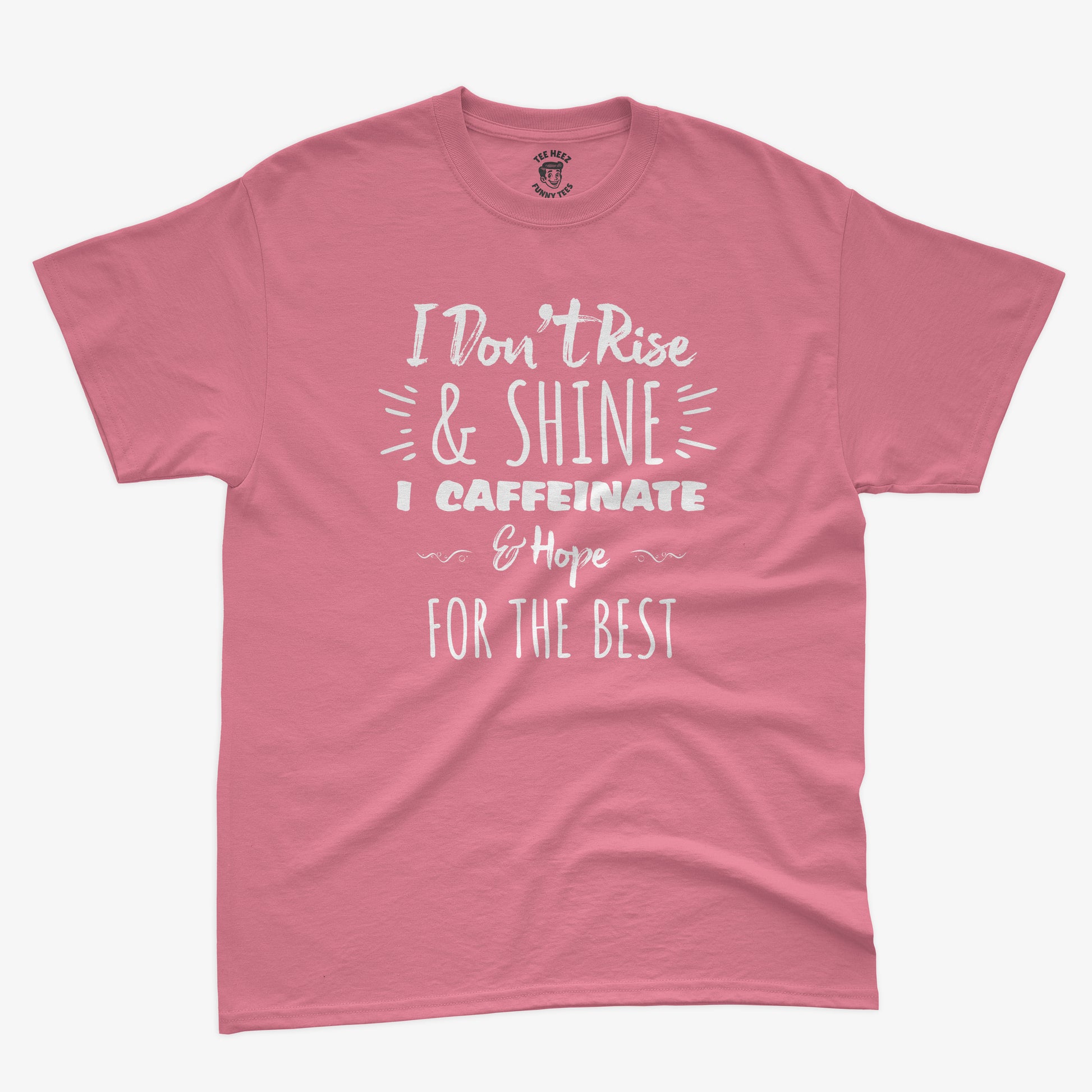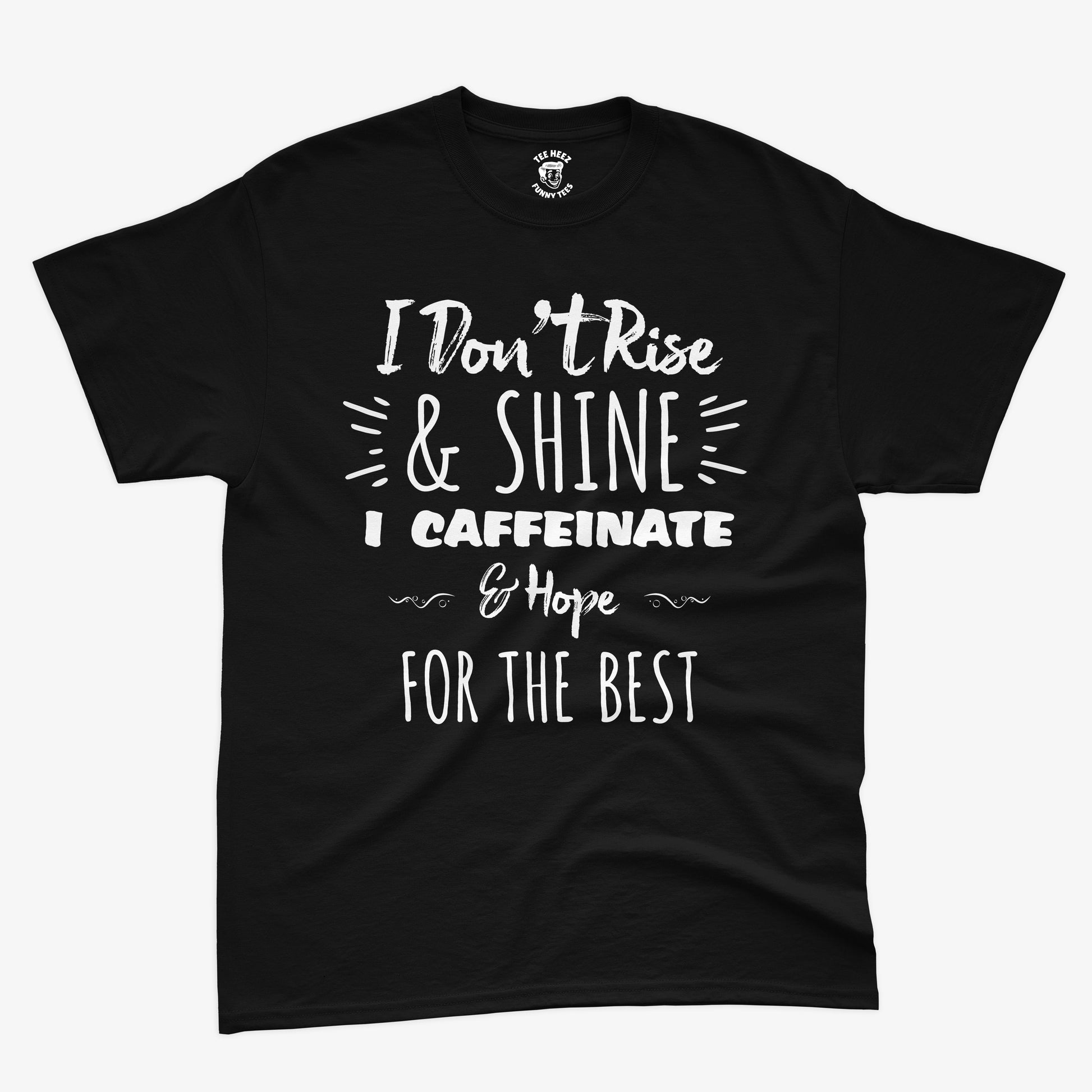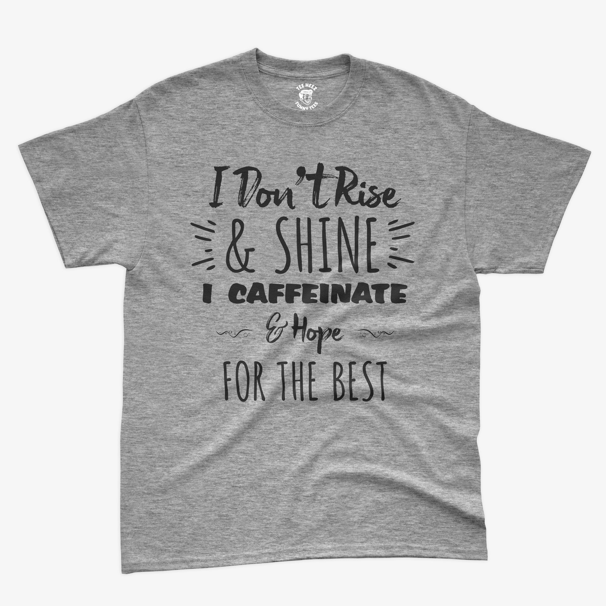 Not a morning person? Same. This shirt gets it. “I Don’t Rise & Shine, I Caffeinate & Hope for the Best” is the official uniform for the caffeine-dependent, optimism-optional crowd. Whether you’re dragging through Monday or just keeping your eyelids open with espresso shots, this tee’s your vibe.