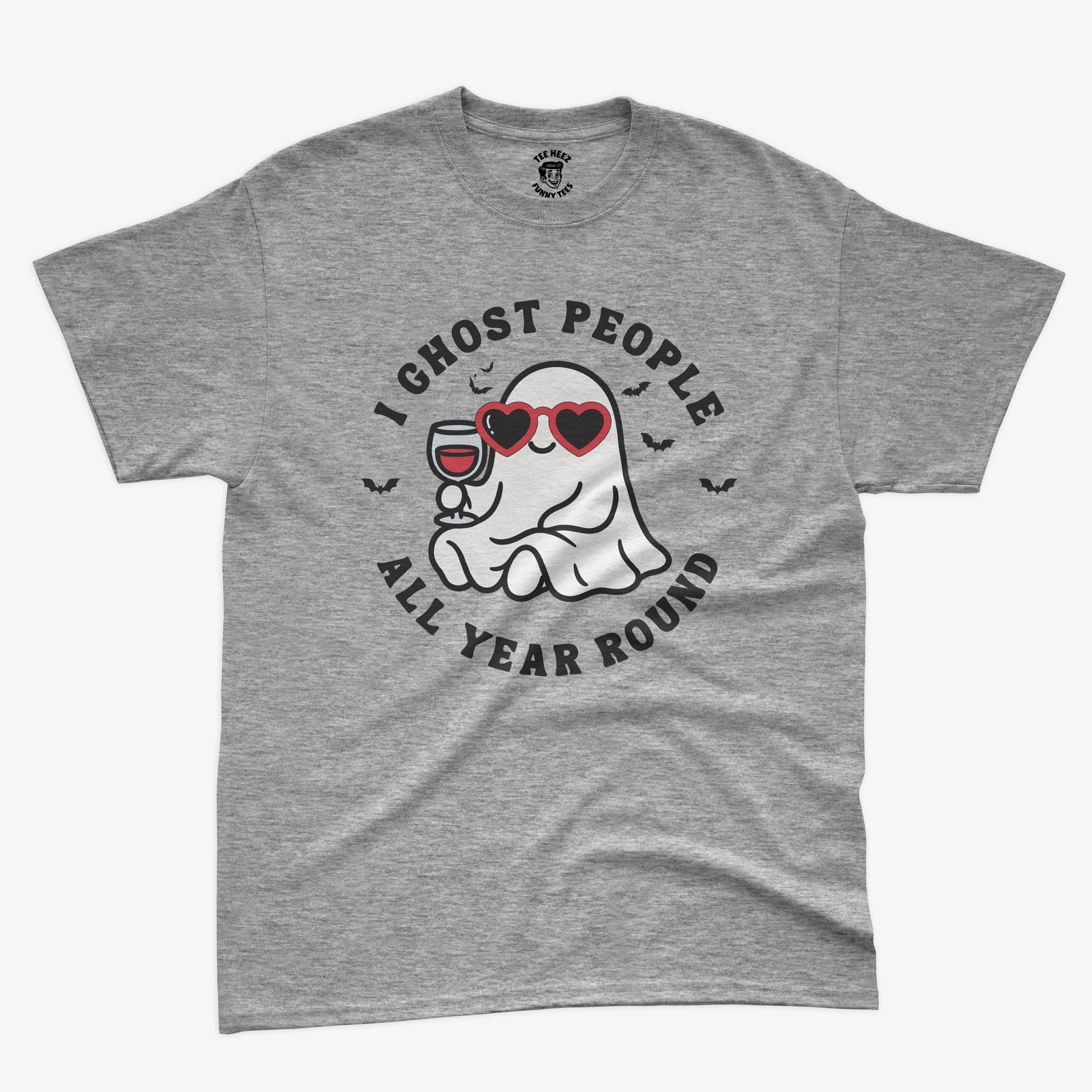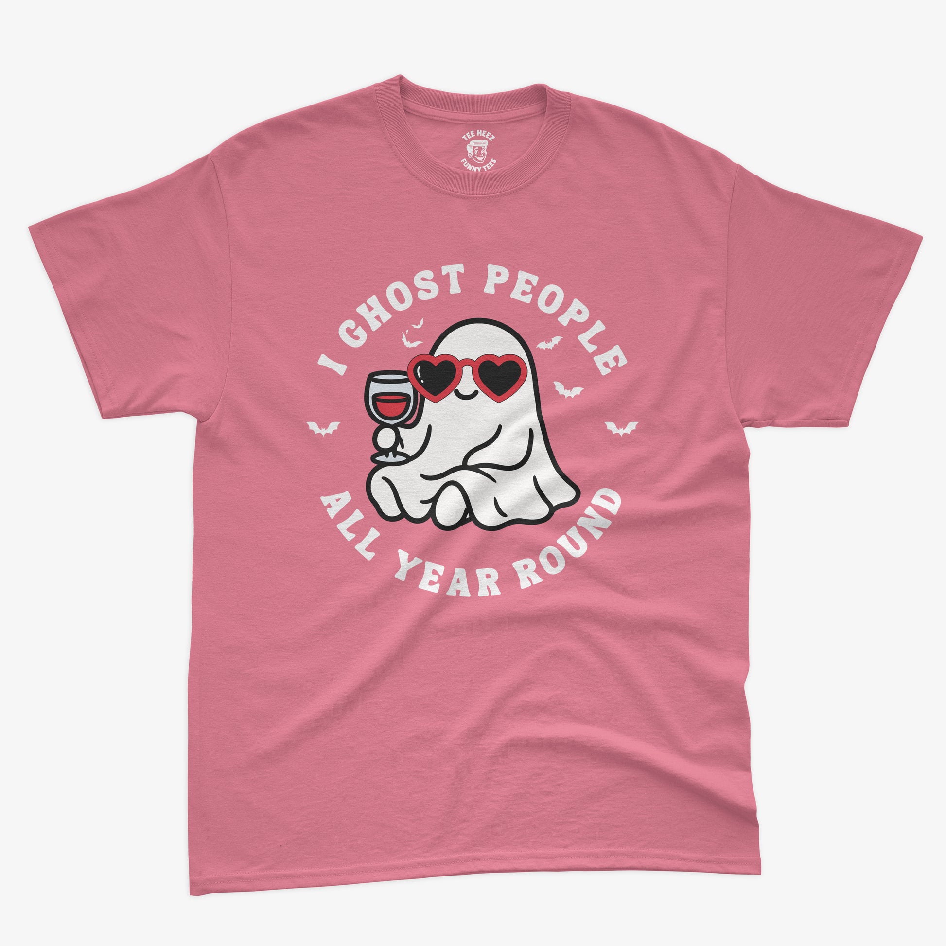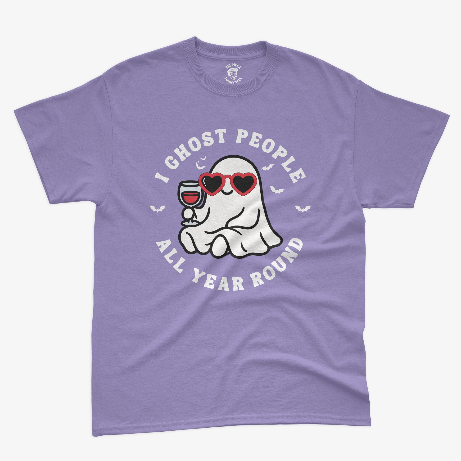 This spooky-cute t-shirt features a chill ghost with heart-shaped sunglasses and a glass of wine, serving sass and silence in equal measure. Whether you're dodging texts, skipping parties, or just vibing solo, this shirt is your new favorite excuse.
