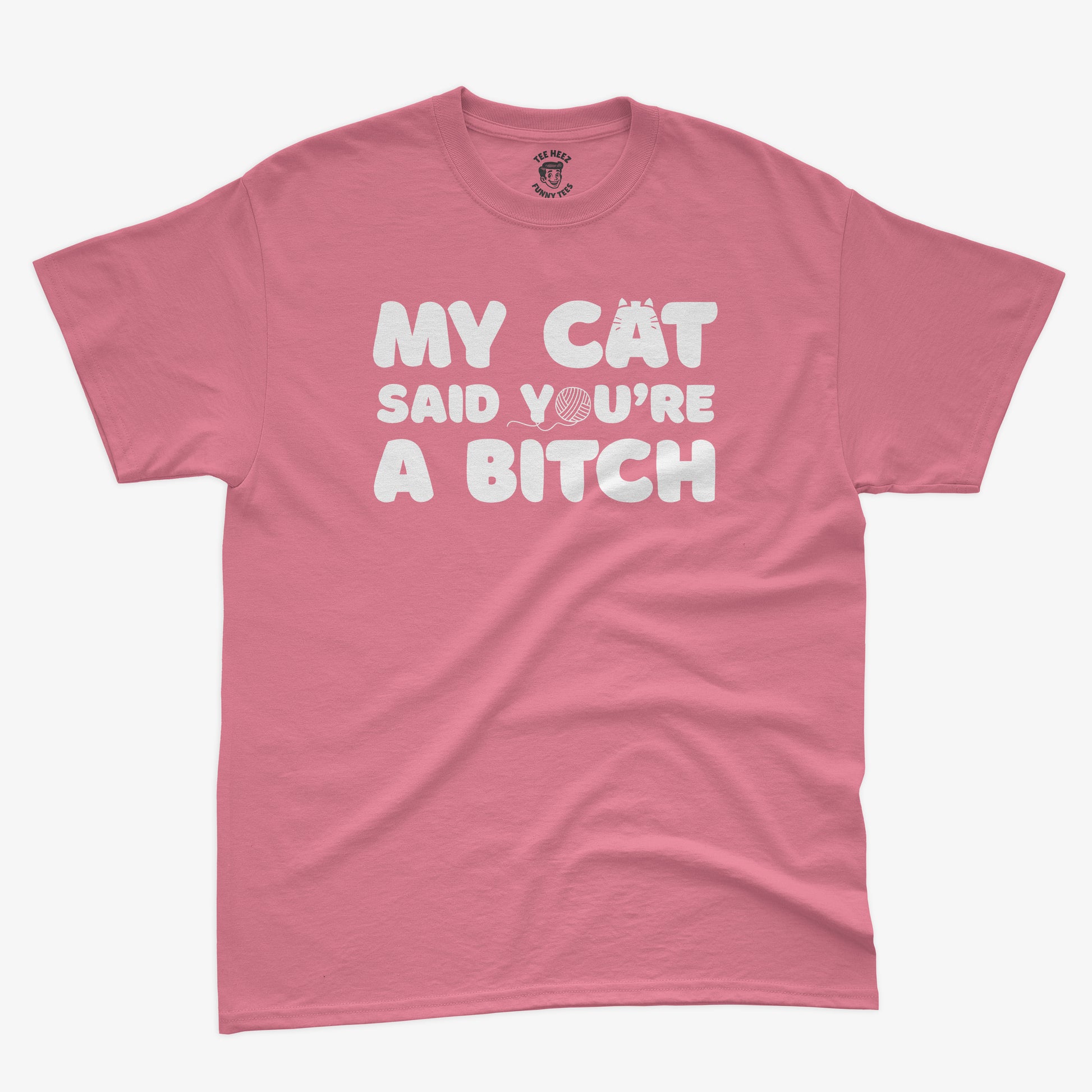 Listen, don’t shoot the messenger — the cat said it, not you. This bold and hilariously petty tee lets your feline do the talking. Featuring chunky, playful letters, sneaky cat ears, and a yarn-ball twist, it’s perfect for cat lovers with a savage streak and zero tolerance for nonsense.